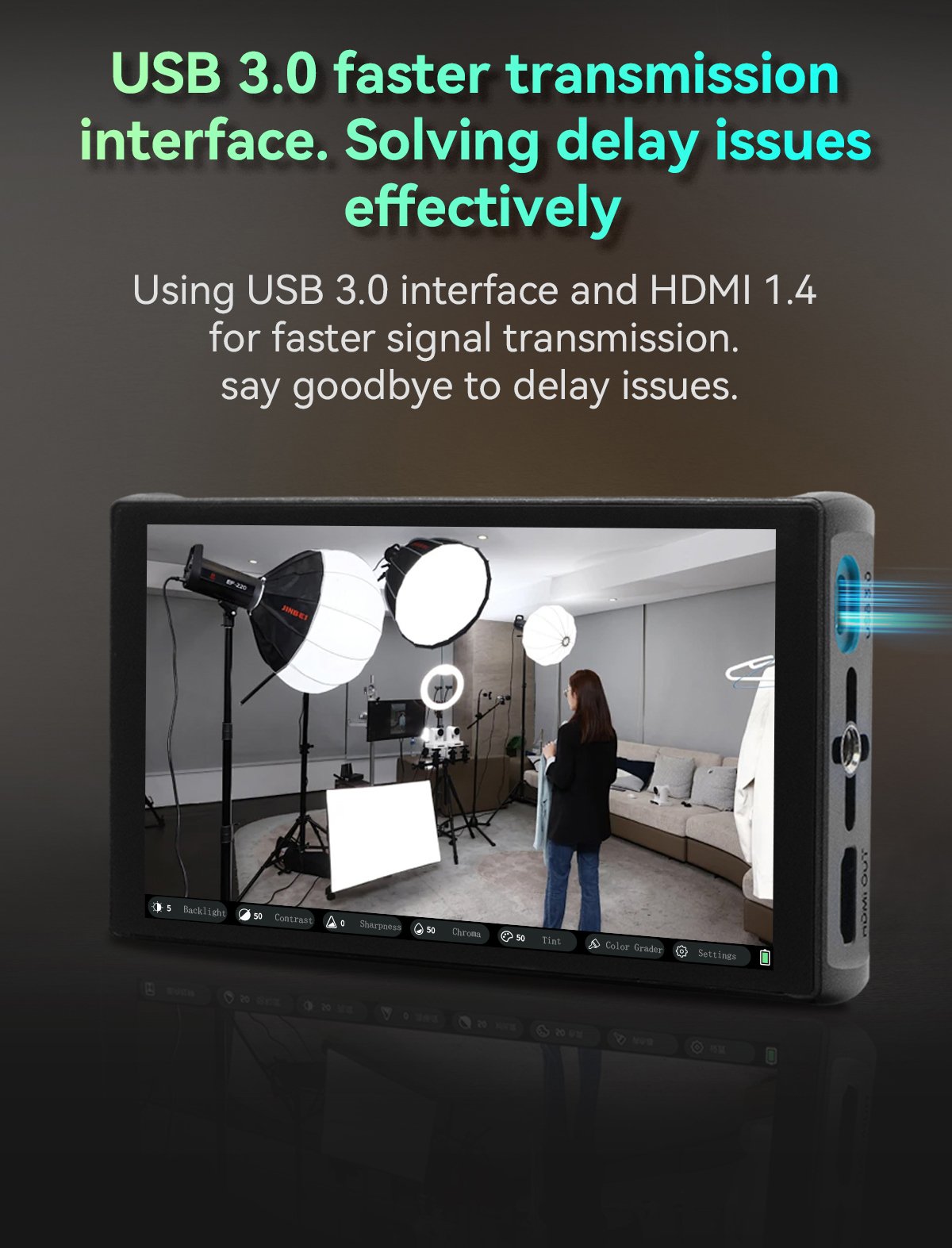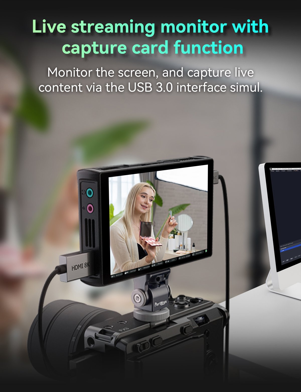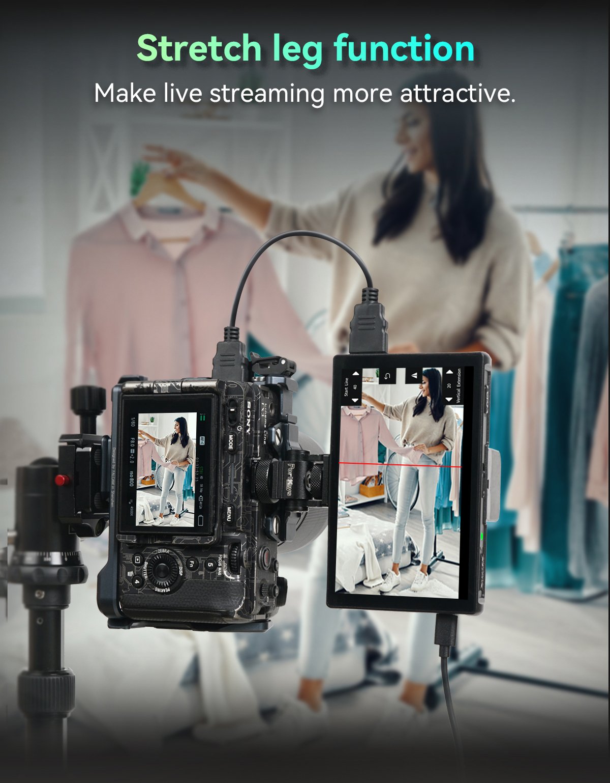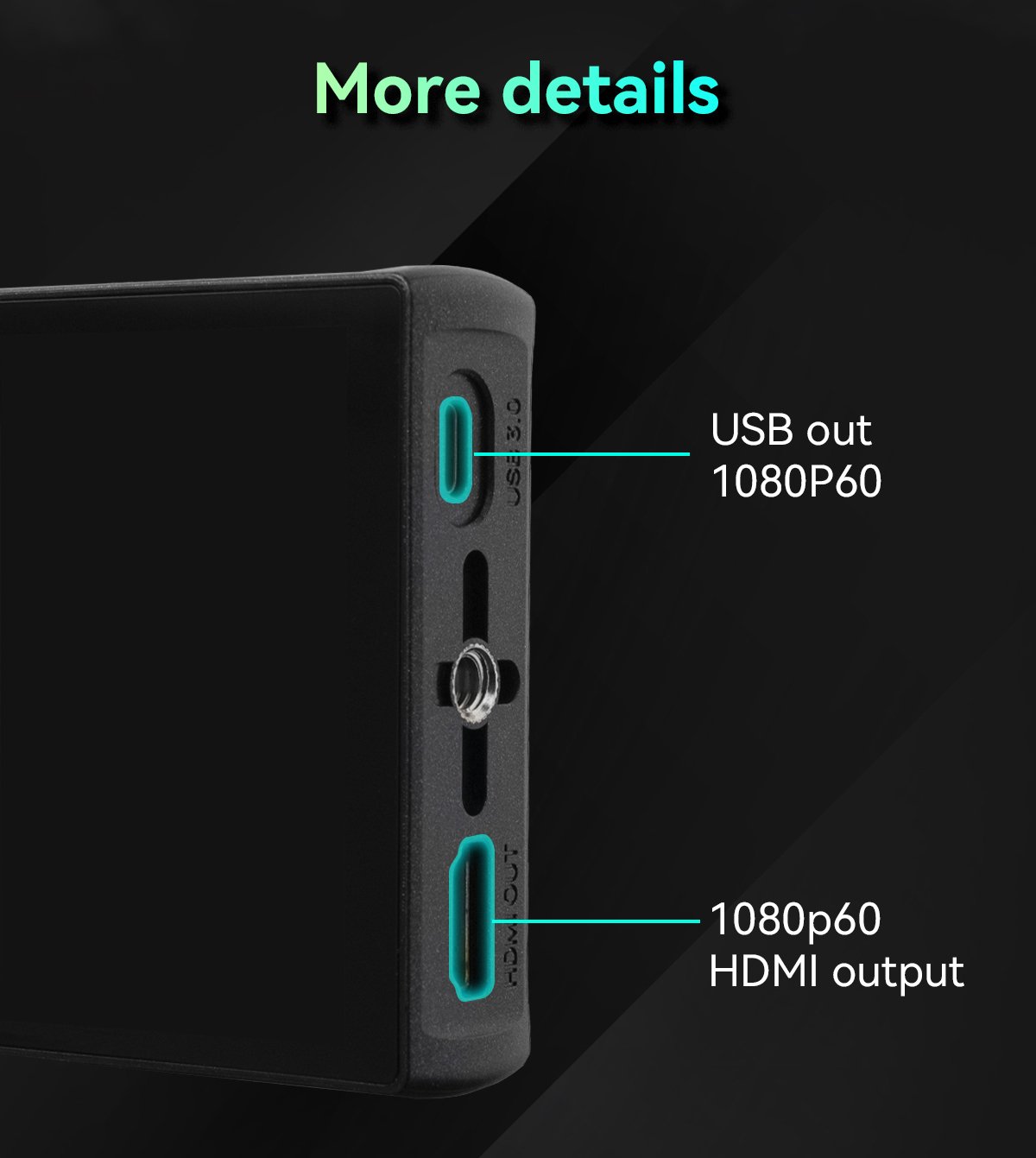 ¡Monitor táctil 4K HDMI de 5,4" con función de transmisión a través de la interfaz USB 3.0! Ofrece una entrada HDMI (hasta 4K a 30 fps) y salidas HDMI (1080p a 60 fps) y USB 3.0 (1080p a 60 fps YUV2/M-JPEG) para la transmisión directa, por ejemplo, mediante OBS. Por supuesto, se alimenta mediante baterías NP-F e incluye numerosas funciones de software, entre ellas un corrector de color.