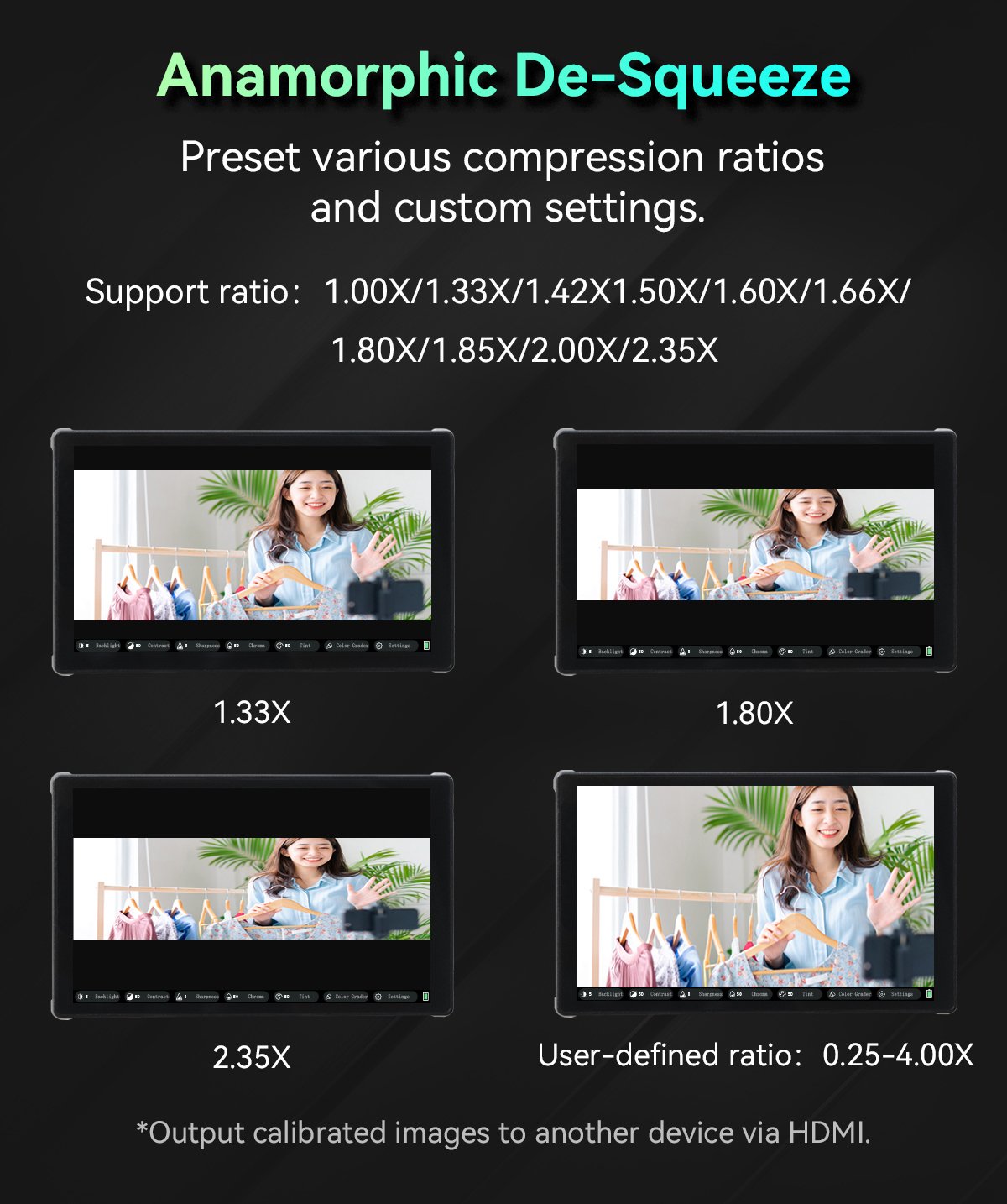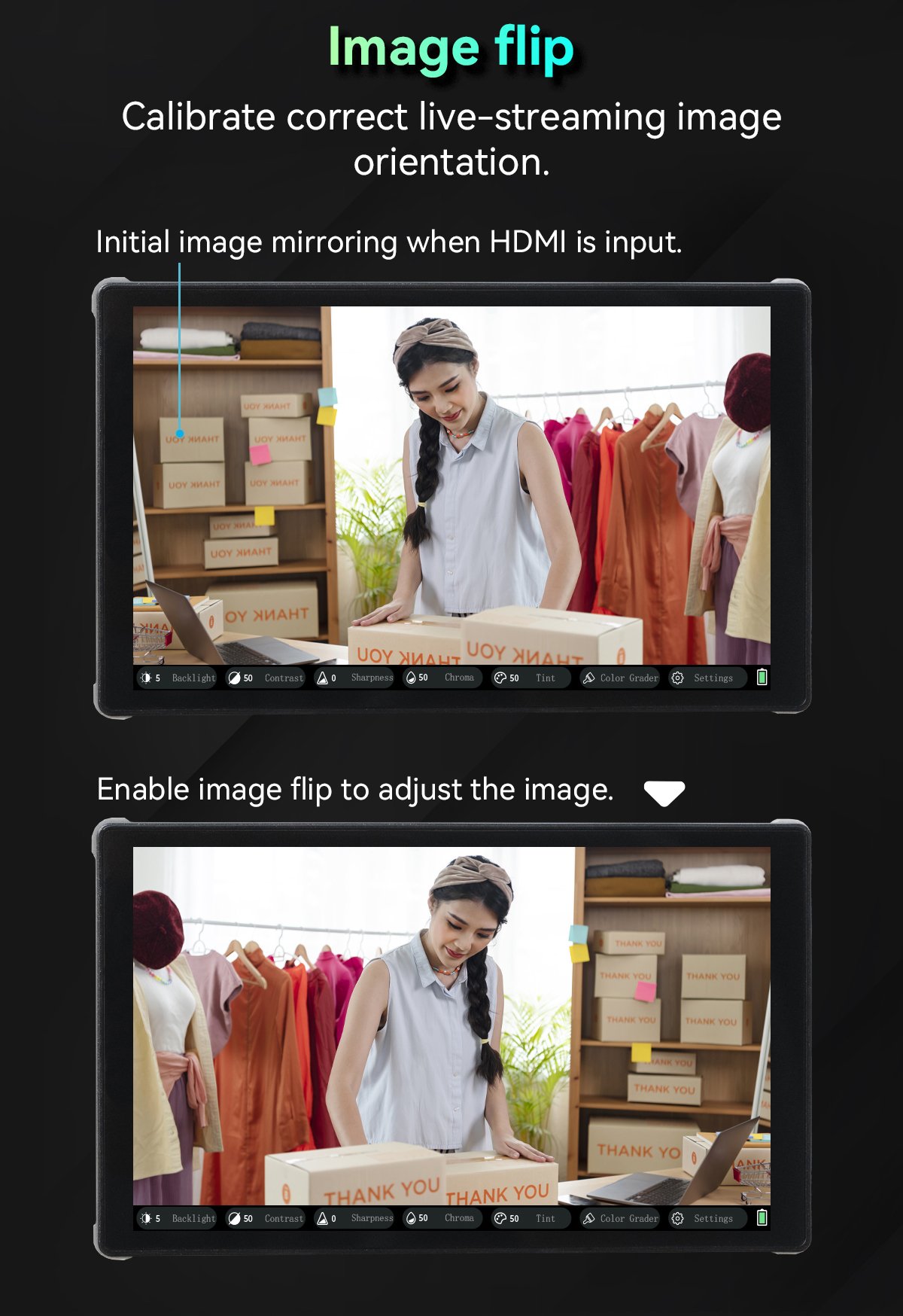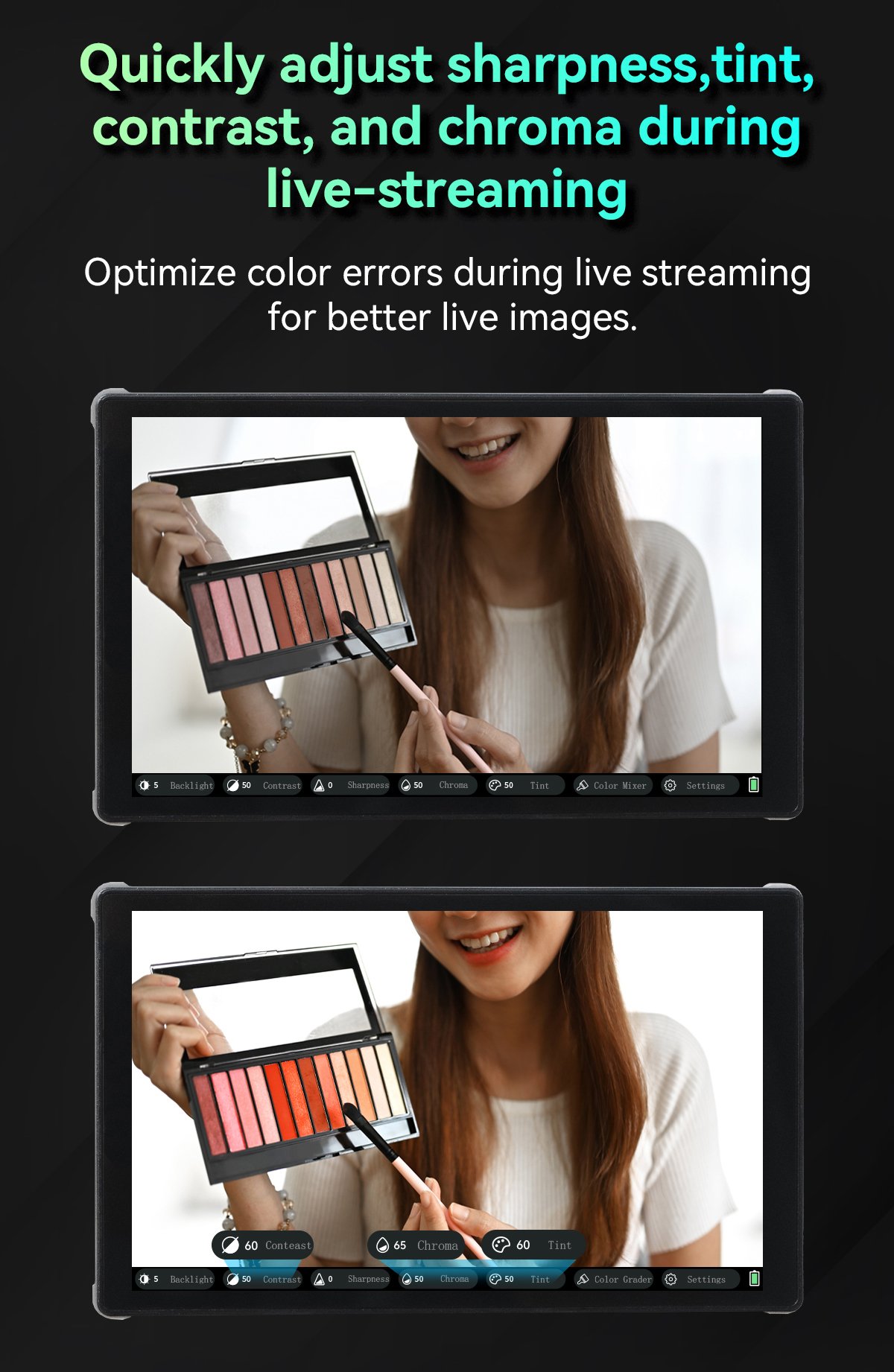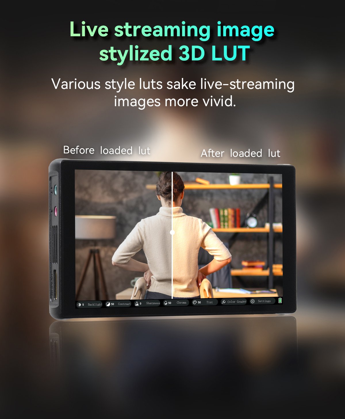¡Monitor táctil 4K HDMI de 5,4" con función de transmisión a través de la interfaz USB 3.0! Ofrece una entrada HDMI (hasta 4K a 30 fps) y salidas HDMI (1080p a 60 fps) y USB 3.0 (1080p a 60 fps YUV2/M-JPEG) para la transmisión directa, por ejemplo, mediante OBS. Por supuesto, se alimenta mediante baterías NP-F e incluye numerosas funciones de software, entre ellas un corrector de color.