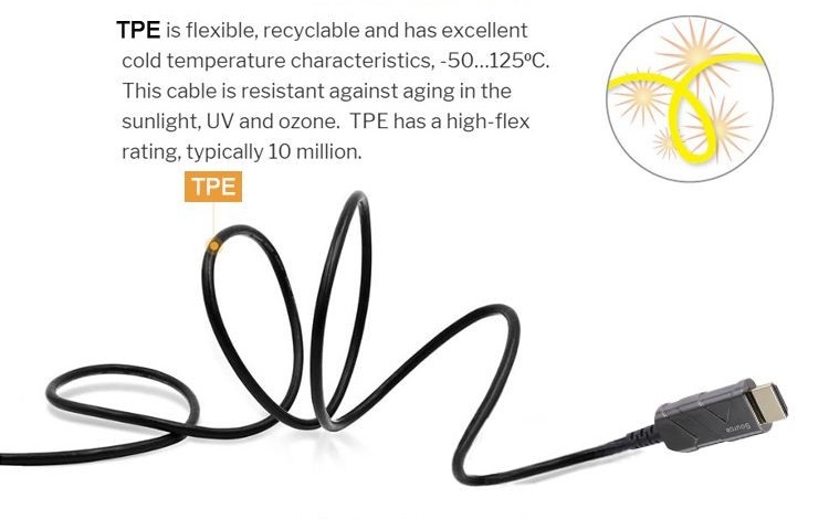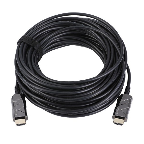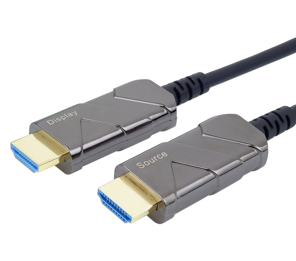 El cable óptico híbrido HDMI™ (fibra óptica + cobre) conecta dispositivos a largas distancias de hasta 100 m sin pérdida de datos, incluso en zonas con altos niveles de radiación electromagnética. Gracias a su diseño especialmente fino y ligero, es ideal para todo tipo de instalaciones.