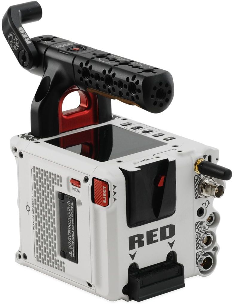 Una empuñadura superior compacta que se fija fácilmente a la parte superior del cuerpo de los modelos Komodo, Komodo-X, V-Raptor o V-Raptor XL y ofrece una combinación de comodidad y practicidad al transportarla o grabar. Está equipada con inserciones ergonómicas de madera de bocote y cuenta con un control del disparador de la cámara. La empuñadura incluye: disparador, pieza trasera de 3", pieza delantera de 1" y soporte para monitor de 15 mm.