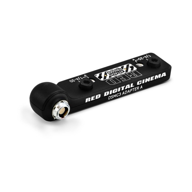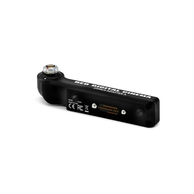 El adaptador DSMC3 A se conecta a la parte superior de la cámara KOMODO-X (requiere el nuevo firmware de finales del primer trimestre de 2024), V-RAPTOR o V-RAPTOR XL y proporciona una salida de 16 pines que garantiza la alimentación, el vídeo y el control del visor electrónico compacto RED y del visor electrónico DSMC2 RED (OLED). El adaptador DSMC3 A incluye una salida Run-Stop de paso que se puede utilizar para el V-RAPTOR, para empuñaduras superiores compactas y para accesorios de terceros.