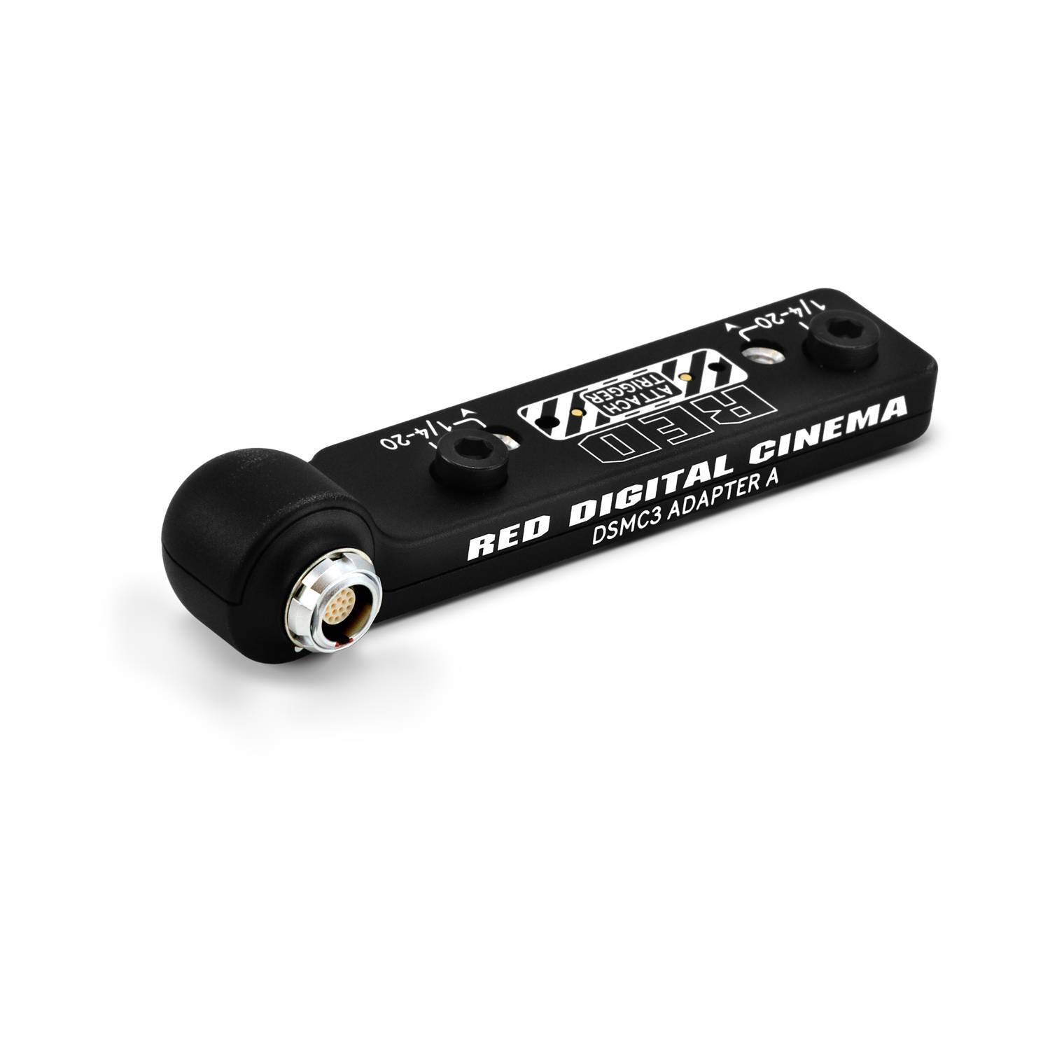 Notas: El adaptador DSMC3 A no es compatible con la pantalla LCD de 7,0" DSMC3 RED Touch ni con la empuñadura extensible KOMODO. Para evitar daños en la cámara, el adaptador DSMC3 A solo debe colocarse o retirarse con la cámara apagada.