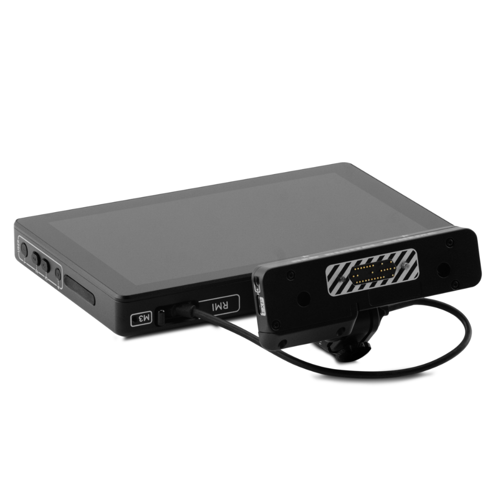 Esta pantalla ligera cuenta con un brazo articulado integrado y extraíble que gira 180 grados, lo que ofrece múltiples opciones de montaje. Además, cuenta con la última generación de pines pogo, que proporcionan alimentación y señal de vídeo al monitor, y una conexión mediante cable USB-C al estilo DSMC3 RMI con un único conector para señal y alimentación. No se necesitan cables SDI ni de alimentación adicionales.