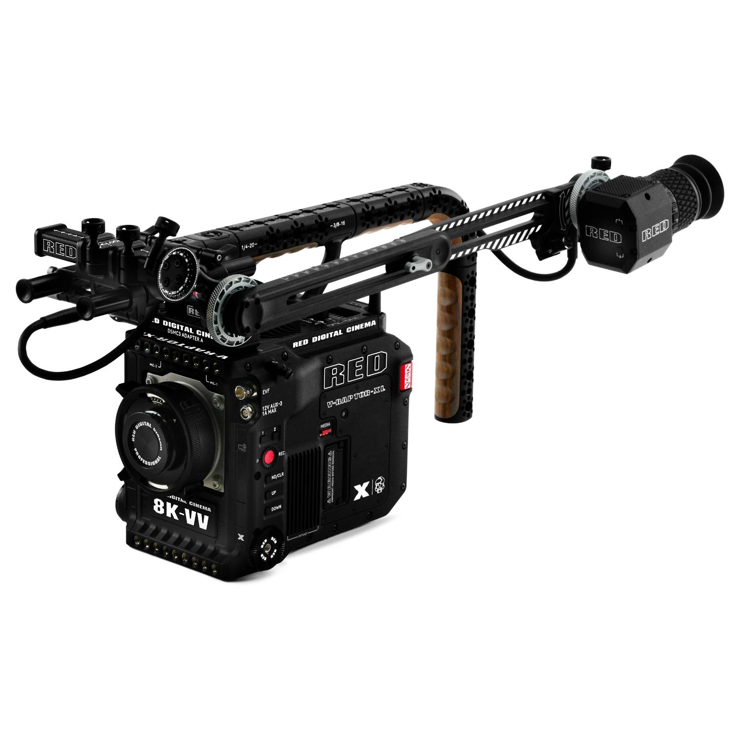 Notas: La abrazadera de 15 mm no está incluida en el suministro; se puede utilizar, por ejemplo, el soporte superior RED de 15 mm y el soporte de varilla V-RAPTOR XL Top de 15 mm LWS para el sistema DSMC3. El visor electrónico compacto RED y el adaptador DSMC3 A se venden por separado.