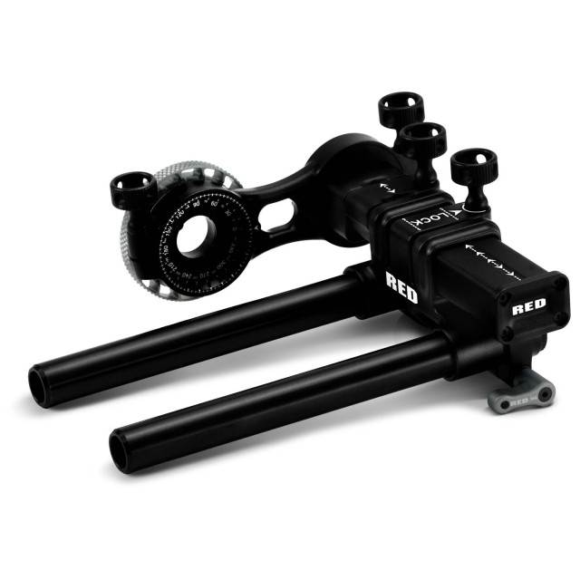 El soporte RED EVF es un sistema ligero para montar visores electrónicos (EVF) mediante rieles de 15 mm, por ejemplo, para su uso con el RED Compact EVF y el RED EVF (OLED) DSMC2 en los sistemas de cámara DSMC3 y DSMC2. El soporte RED EVF cuenta con una estructura telescópica multieje que permite encontrar fácilmente la posición óptima para cada situación. El soporte incluye una abrazadera de fijación rápida para el visor, marcas de distancia y ángulo creadas con láser, tornillos de fijación rápida para un ajuste rápido y sencillo, y la posibilidad de utilizar el brazo extensible RED EVF Extension Arm (se vende por separado).