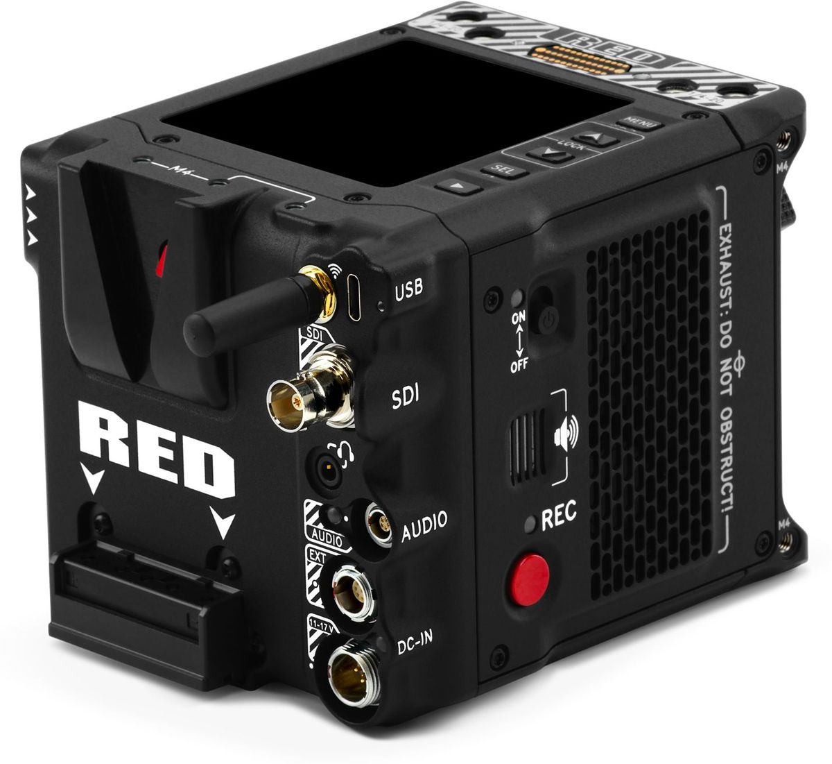 Gracias a estas innovaciones, la Komodo-X resulta más fácil de utilizar en producciones cinematográficas de alta gama, al tiempo que conserva las dimensiones compactas del modelo Komodo. Entre las nuevas interfaces se incluyen 12G-SDI, una entrada de alimentación de tamaño completo, un puerto USB-C y un conector de audio con bloqueo de seguridad y compatibilidad con alimentación fantasma. La pantalla LCD integrada de 2,9" facilita el control y la visualización del vídeo; para una visualización precisa, se puede utilizar el monitor opcional RED DSMC3 Touch LCD de 7".