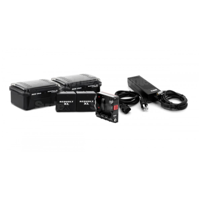 El kit REDVOLT XL Power Pack incluye cuatro baterías REDVOLT XL (con sus estuches de transporte), un módulo REDVOLT XL Module y un adaptador de corriente alterna AC Power Adaptor (DSMC), es decir, todo lo necesario para alimentar las cámaras EPIC o SCARLET. Gracias a la placa Switch Plate, el módulo se puede conectar directamente a la cámara o a otro módulo y sirve para fijar las baterías de litio REDVOLT XL. Las baterías se pueden cambiar incluso mientras la cámara está en funcionamiento, siempre que el dispositivo se alimente mediante el mango DSMC Side Handle o mediante un adaptador de alimentación externo. El puerto AUD (conector de 2 pines 0B) proporciona hasta 3,8 A para alimentar los accesorios de la cámara. Compatibilidad: EPIC/SCARLET DRAGON, EPIC/SCARLET M-X.