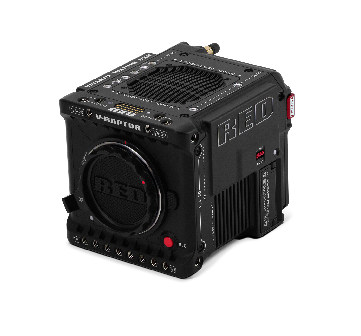 La nueva plataforma DSMC3 ofrece una mejor refrigeración de los componentes electrónicos y una compatibilidad limitada con los accesorios DSMC2 (por ejemplo, el KOMODO Outrigger Handle). Los accesorios previstos incluyen el monitor RED DSMC3 7.0 TOUCH, el nuevo módulo expansor DSMC3, una placa de montaje superior para accesorios que incluye un asa, una placa base de fijación rápida compatible con el sistema Arca-Swiss, asas laterales y un adaptador de audio de 5 pines a 2 conectores XLR. La V-RAPTOR graba en REDCODE RAW (datos RAW de 16 bits), ofrece la función de pregrabación y utiliza la tecnología de gestión del color IPP2. El cuerpo, con un peso aproximado de 1,8 kg, está equipado con una montura Canon RF y salidas 12G-SDI, y cuenta también con Wi-Fi de 2,4/5 GHz con posibilidad de transmisión en streaming en modo 1080p.