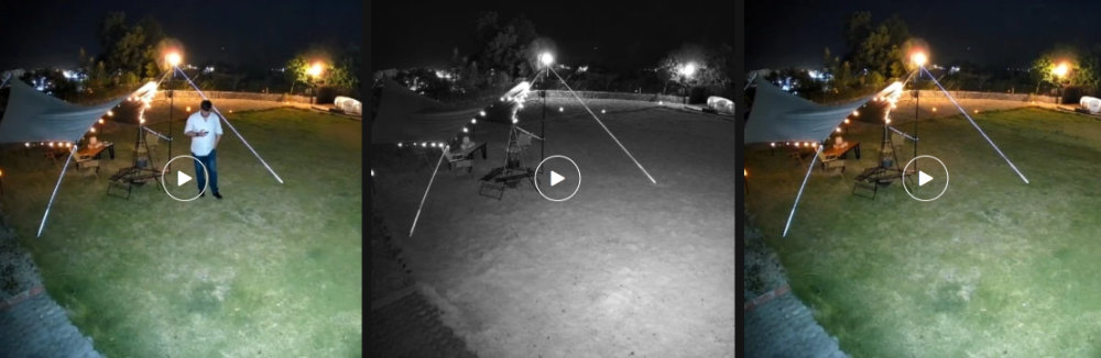 Gracias al foco activado por movimiento o según un horario programado, la cámara puede alternar entre visión nocturna en blanco y negro y en color, lo que le ofrece vídeos de los eventos a todo color. También puede encender o apagar el foco y cambiar los modos nocturnos manualmente.