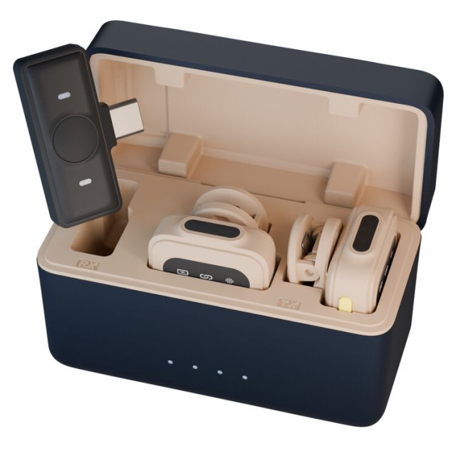 El sistema de micrófonos inalámbricos RGBlink AI nano es una solución de audio fácil de usar para vlogueros, streamers y creadores de contenido en formato de entrevistas que utilizan dispositivos con el sistema operativo Android o iOS. El sistema incluye dos transmisores ligeros con clip y micrófonos integrados, y un receptor de dos canales con conector USB-C que se conecta directamente a smartphones y tabletas compatibles.