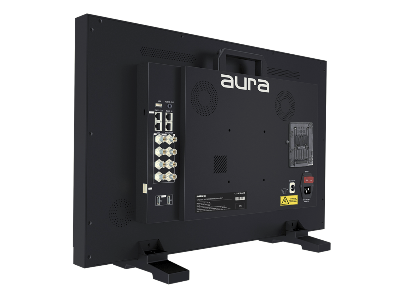 En comparación con el modelo de primera generación, el Studio 32 Gen 2 permite la visualización simultánea de cuatro señales 12G-SDI, y cada ventana admite modos de color independientes y las correspondientes pistas de audio. La forma de onda HDR y los colores falsos (incluidos los perfiles de cámaras ARRI y Red) proporcionan herramientas avanzadas de monitorización. Una característica destacada de la serie Studio es la conectividad Thunderbolt™, que permite previsualizar las salidas de DaVinci Resolve™ y Adobe Premiere Pro™ en tiempo real. Otras características incluyen alimentación XLR de 24 V CC, compatibilidad con baterías V-mount y circuitos optimizados para eficiencia energética, ESD y EMI. Gracias a estas funciones profesionales, el Aura UHD Studio 32 Gen 2 es ideal para la posproducción de alta gama, la retransmisión en directo y los flujos de trabajo de color críticos.