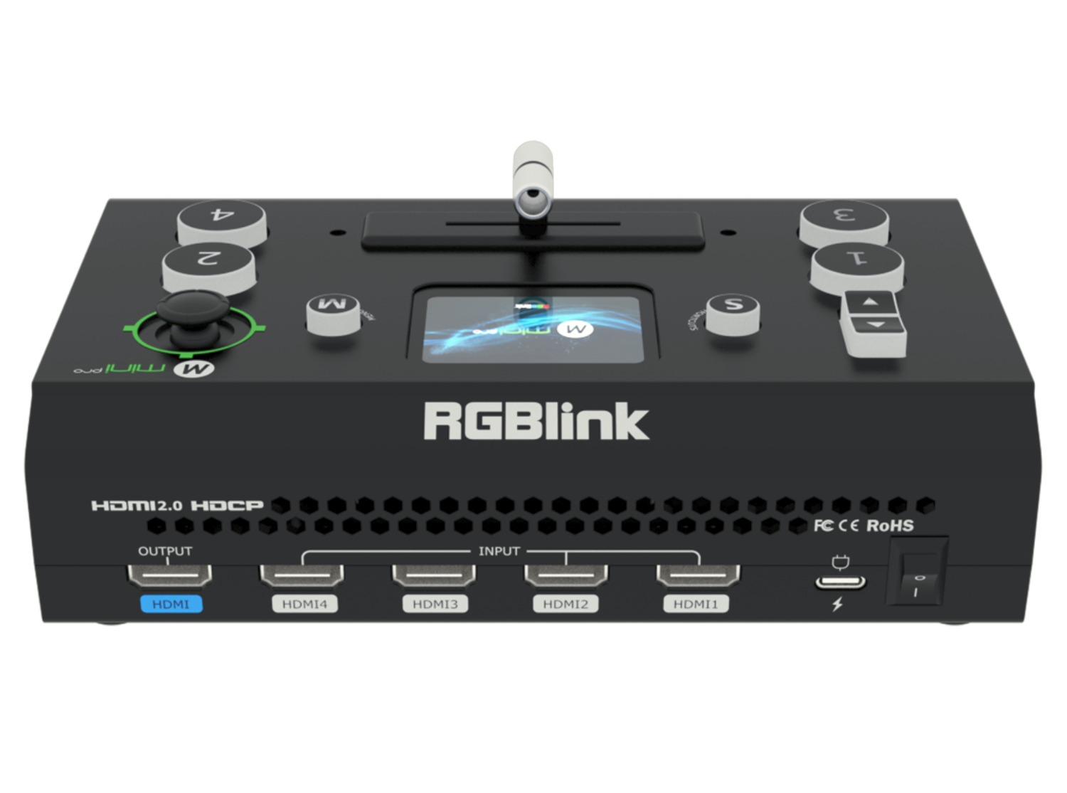 El RGBlink mini-pro 2022 es un miniconmutadorpotente pero compacto, diseñado para creadores de contenido, docentes, instituciones religiosas y productores de eventos en directo que necesitan un control profesional en un dispositivo portátil. Admite cuatro entradas HDMI 2.0 con una resolución de hasta 4K a 60 fps, lo que permite una integración fluida de cámaras, ordenadores portátiles y reproductores multimedia. La pantalla LCD integrada ofrece una vista previa del vídeo en tiempo real y permite navegar por los menús, por lo que no es necesario un monitor externo durante la configuración.