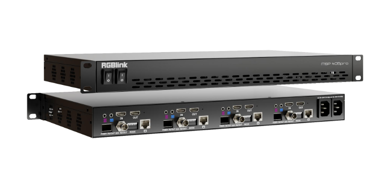 El RGBlink MSP 405 Pro es un convertidor y sistema de distribución de señal AV profesional capaz de convertir señales SDI, HDMI 2.0 y ópticas, con compatibilidad con los formatos HD, 3G, 6G y 12G. Gracias a sus patrones de prueba integrados, la inserción de audio y el control a través de Ethernet, el MSP 405 Pro es ideal para emisiones, retransmisiones en directo e instalaciones AV complejas que requieren la transmisión de señales a largas distancias y un enrutamiento flexible.