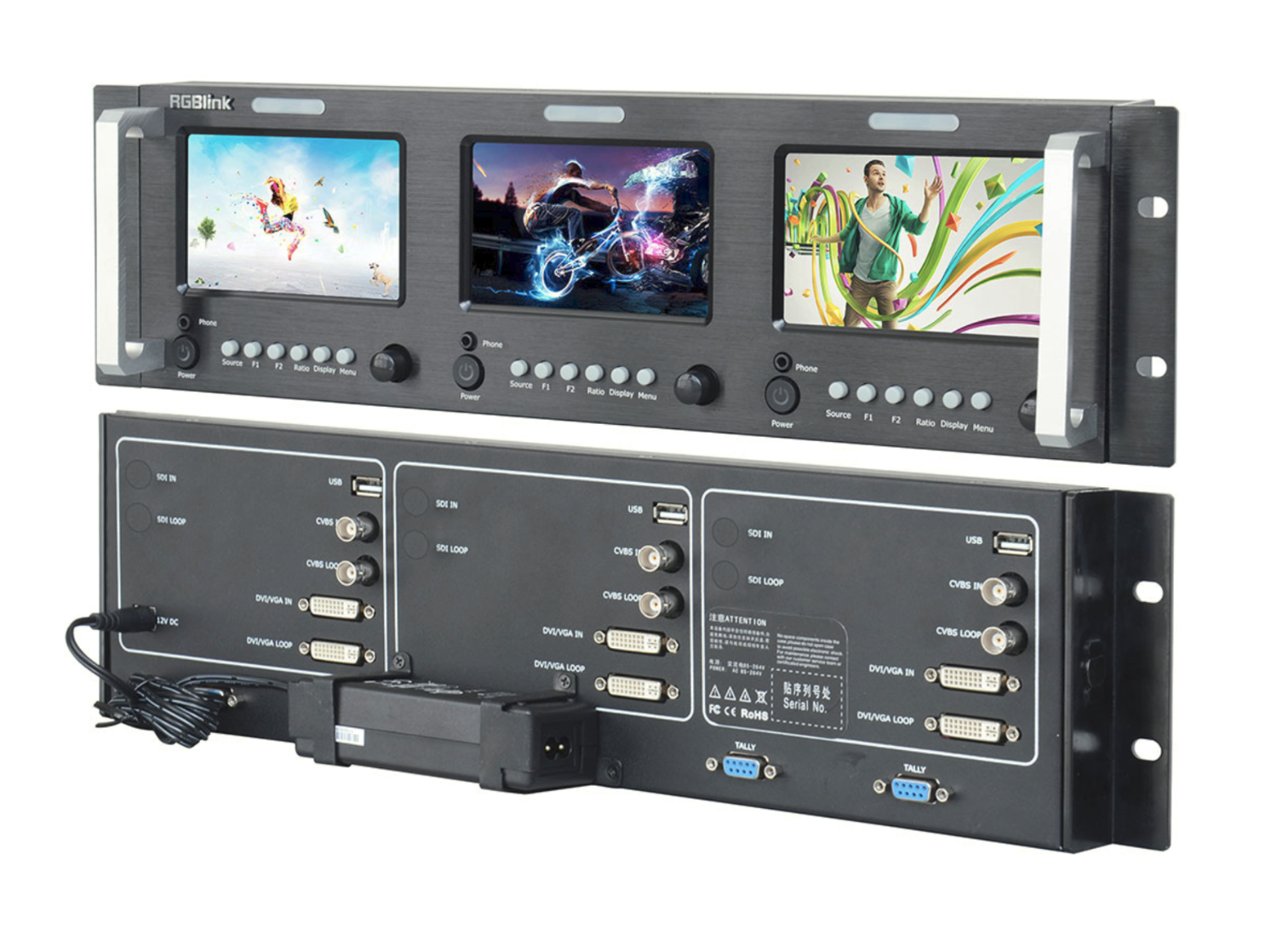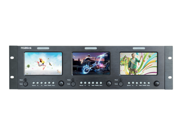 El RGBlink RMS 5533S es un monitor compacto para montaje en rack de 3RU, equipado con tres pantallas LCD independientes de 5 pulgadas que admiten múltiples formatos de entrada de vídeo, indicadores de tally y monitorización de audio integrada, lo que lo convierte en la solución ideal para racks de emisión, salas de control y aplicaciones en unidades móviles.