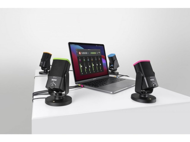 Las fundas de colores para micrófonos y los anillos coinciden con los colores de cada canal en la aplicación RØDE Connect, lo que facilita mucho el seguimiento del orador.
