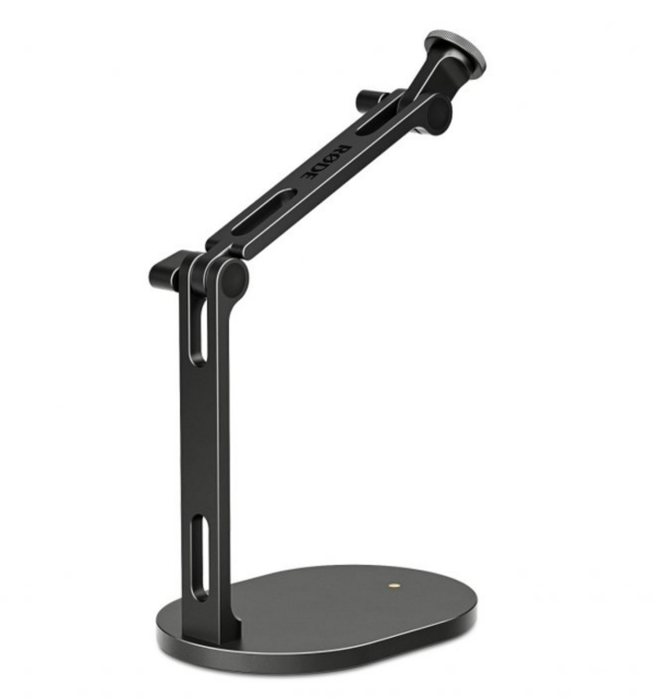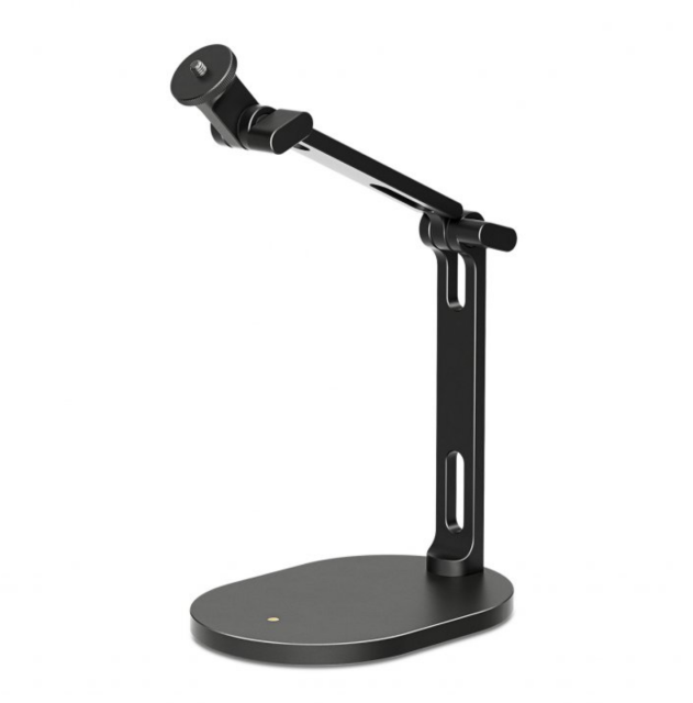 Este brazo de estudio de mesa compacto es ideal para micrófonos, cámaras, teléfonos inteligentes, luces y otros accesorios con un peso de hasta 900 g. No se necesitan abrazaderas ni orificios de montaje. Simplemente coloque el brazo DS2 sobre una base estable en una mesa o cualquier superficie plana. El brazo cuenta con dos puntos de giro que permiten cambiar rápida y fácilmente la posición del dispositivo conectado. Los orificios integrados para el paso de cables garantizan un espacio de trabajo ordenado sin enredos de cables.
