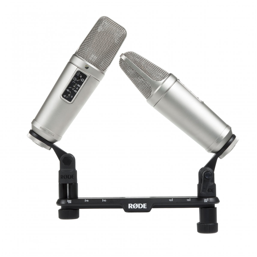 La barra estéreo RØDEes una solución resistente para montar dos micrófonos en posición estéreo. Gracias a su distancia entre ejes marcada (hasta 20 cm), así como a los indicadores de medición de ángulos de las posiciones ORTF y XY, permite alcanzar rápida y fácilmente la posición deseada de los micrófonos para una grabación estéreo completa. Está equipada con una rosca clásica de 5/8” para una fijación sin problemas en un soporte de micrófono. Su robusta estructura de ABS soporta el peso incluso de dos micrófonos de membrana grande pesados, como por ejemplo el RODE K2.