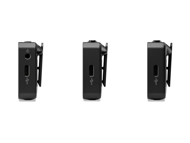 Set inalámbrico de nueva generación Gen 3, 2 transmisores TX, 1 receptor RX, micrófono integrado en cada receptor, posibilidad de conectar un micrófono de solapa, salida analógica TRRS en el receptor, 32 GB de memoria para grabación en cada transmisor, GainAssist, posibilidad de conectar auriculares, baterías internas, autonomía de hasta 7 horas, alcance de 260 m, USB-C para configuración, descarga de grabaciones y recarga, color negro