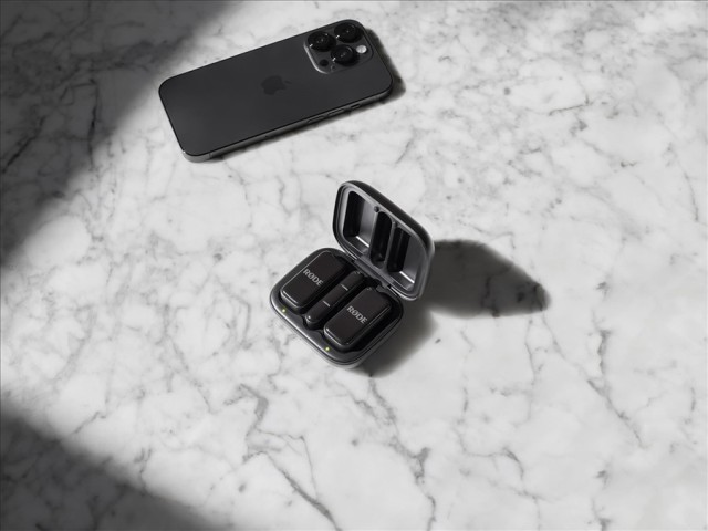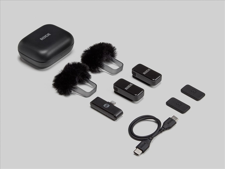 El RØDEWireless Microes un kit de micrófono inalámbricode dimensiones compactasque ofrece una grabación de audio profesional a pesar del tamaño reducido de los componentes del kit. El kit consta de 2 transmisores con micrófono y 1 receptor dual, que se conecta directamente al smartphone mediante un conector Lightning. Para controlar la grabación se utilizala aplicación gratuitaRØDE Capture, disponible paraiOS y Android. El kit incluye imanes para fijarlo a la ropa y fundas protectoras contra el viento para grabar en exteriores. La funda de carga Charge Case garantiza que los componentes inalámbricos estén siempre completamente cargados y protegidos durante el transporte. También se incluye un cable de alimentación USB-C a USB-C.