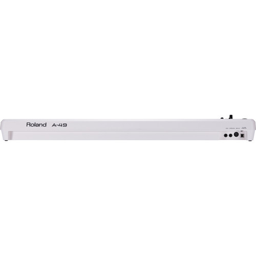 El Roland A-49-WH es un elegante y ligero controlador MIDI de 49 teclas con teclas sensibles a la velocidad, tecnología D-BEAM y alimentación a través del bus USB, ideal para músicos y productores que viajan con frecuencia.