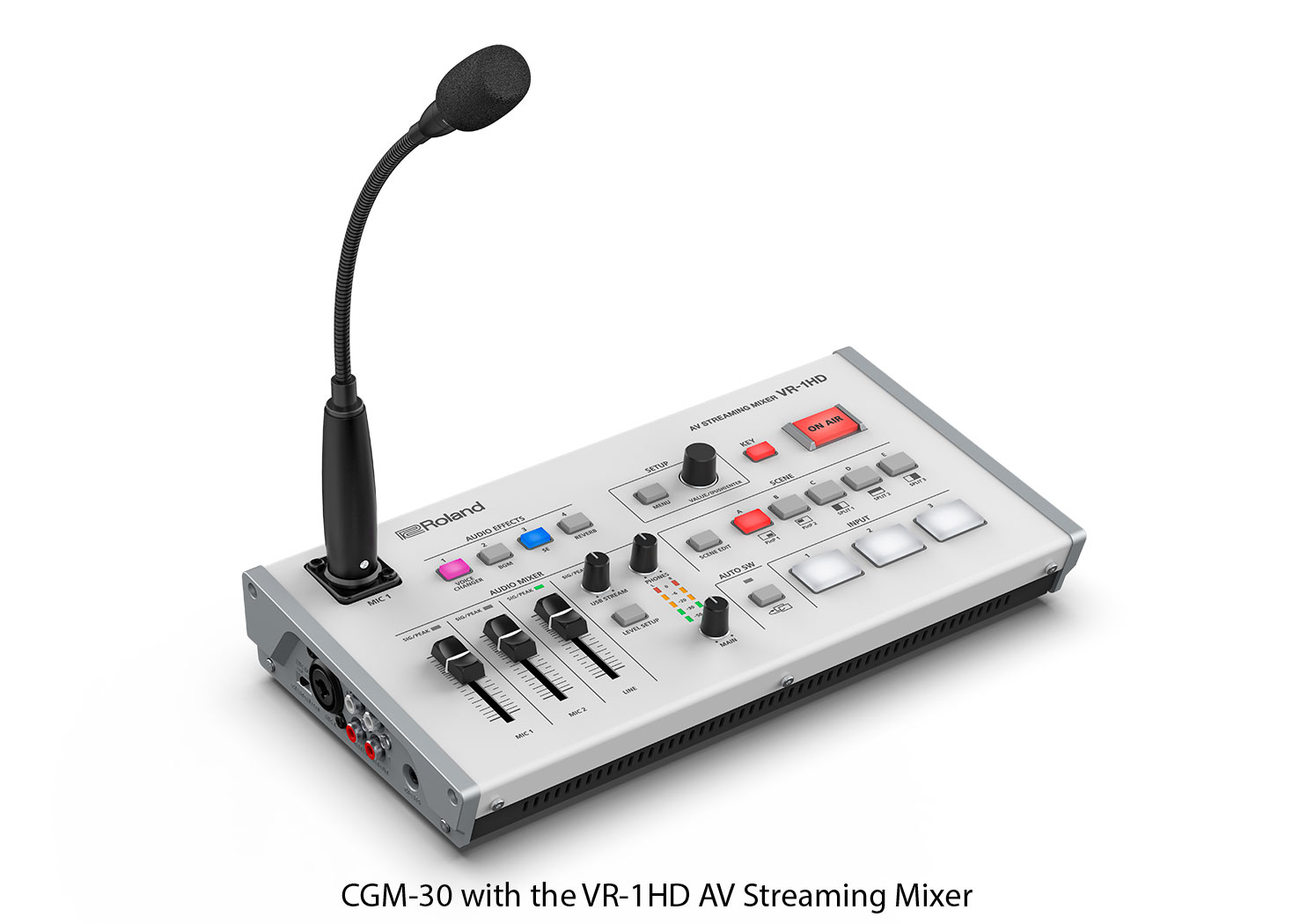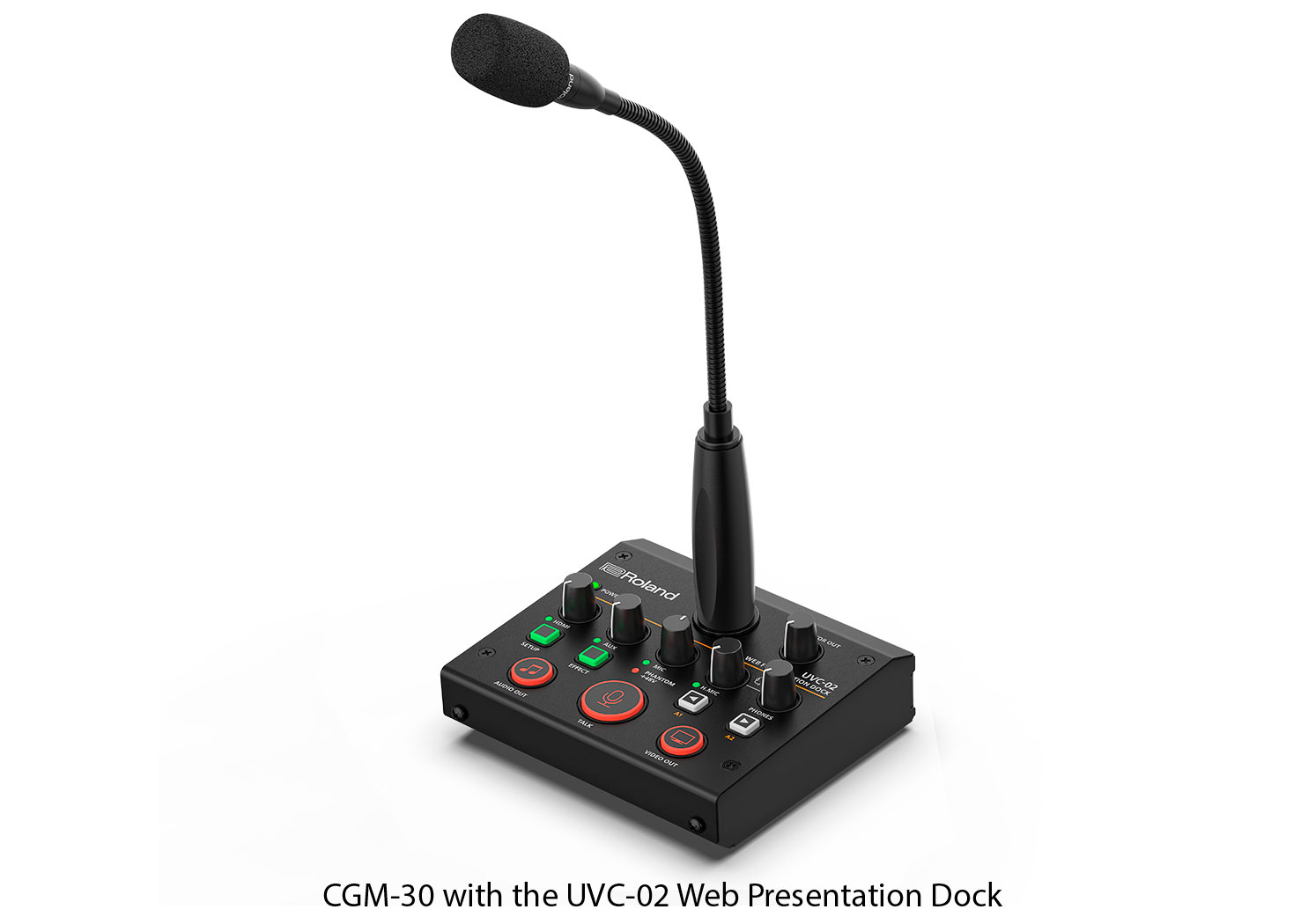 El micrófono CGM-30 con brazo flexible es el complemento perfecto para la estación de acoplamiento UVC-02 Web Presentation Dock y la mesa de mezclas VR-1HD AV Streaming Mixer, y constituye una solución de sobremesa de alta calidad que elimina la necesidad de un micrófono externo y un soporte. El micrófono es ideal para retransmisiones en directo y presentaciones en línea, y cuenta con un diseño de condensador que ofrece un rendimiento de sonido excelente en un formato compacto. El micrófono CGM-30 funciona con alimentación fantasma y se conecta directamente a la entrada XLR del panel superior del producto Roland.