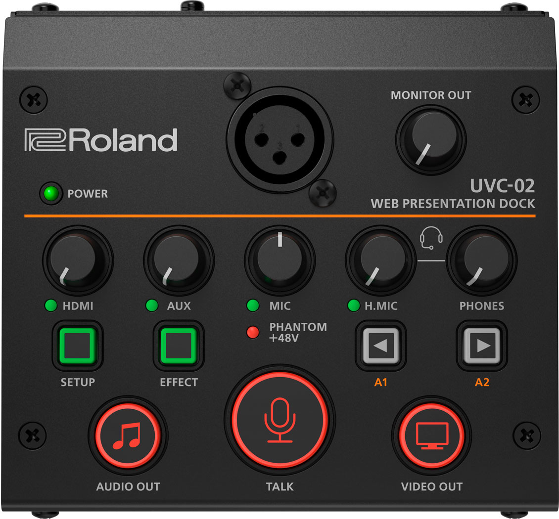 El streaming de vídeo, tanto para el trabajo como para el ocio, se ha convertido en algo habitual en nuestra vida. Sin embargo, con la cámara web y el micrófono de un ordenador normal, nunca lograrás ofrecer la mejor imagen y el mejor sonido. La estación de acoplamiento Roland UVC-02 Web Presentation Dock te ayudará a salvar esta brecha y te ofrecerá una forma sencilla y asequible de mejorar el nivel de tus presentaciones en vídeo mediante un equipo audiovisual de mayor calidad y un mayor control.