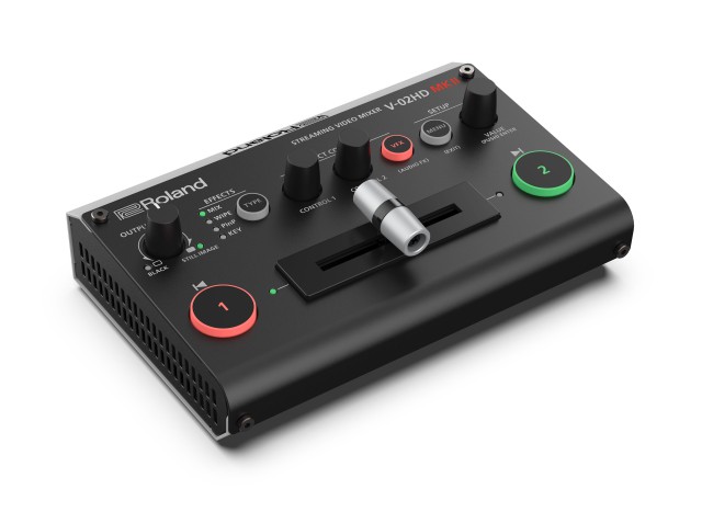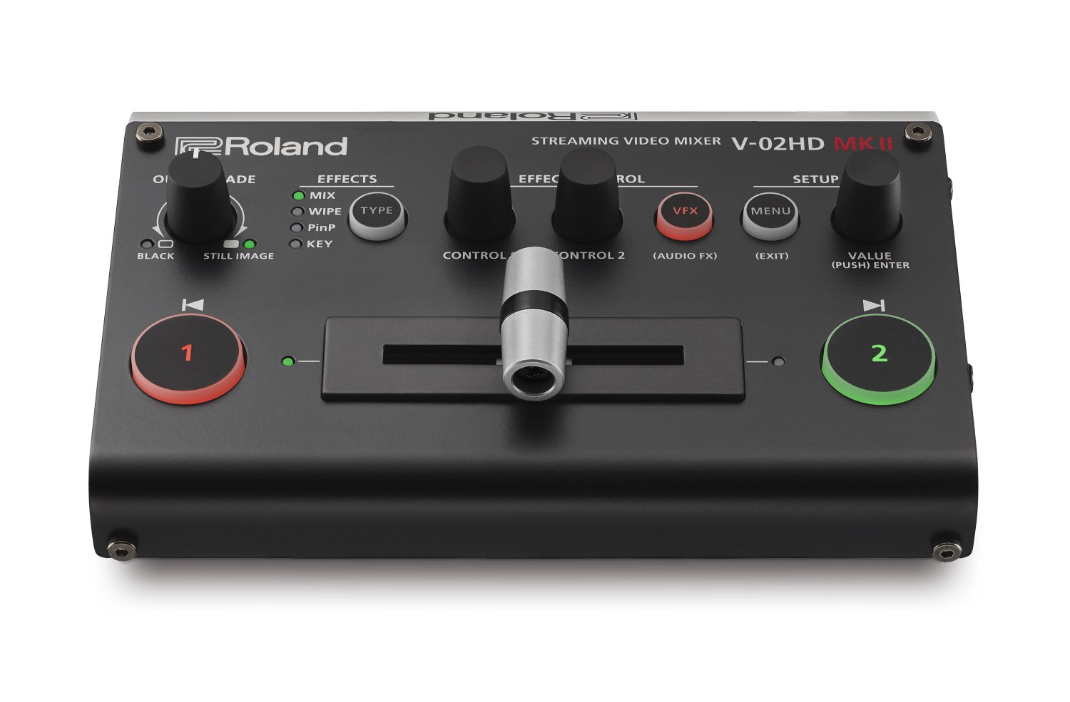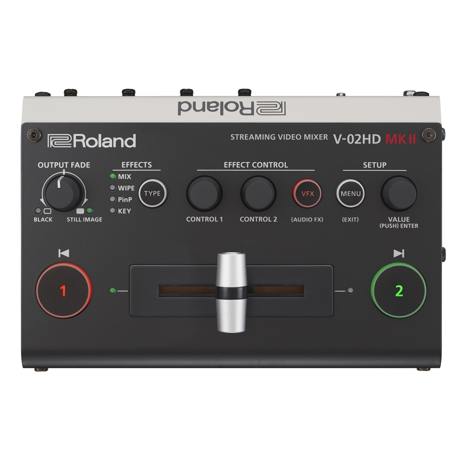 ¡La minúscula mesa de regidor y dispositivo de streaming de dos canales Roland V-02HD MK II simplifica al máximo la producción de programas en directo con dos cámaras con salida HDMI y el streaming mediante un ordenador con interfaz USB-C! No falta la posibilidad de añadir audio a los programas (mesa virtual integrada de 10 canales, 2 entradas jack de 3,5 mm + alimentación por conector, audio HDMI...), aplicar efectos y fundidos, o la posibilidad de controlarlo mediante pedales BOSS (opcionales).