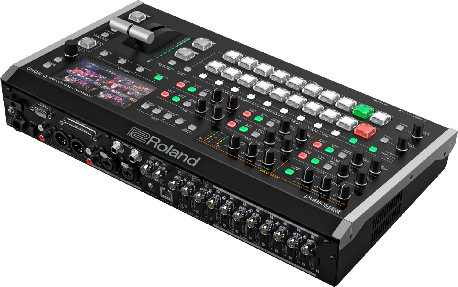 El V-160HD está equipado con funciones profesionales capaces de gestionar cualquier producción moderna, lo que establece un nuevo estándar en el ámbito de la conmutación híbrida de eventos. Conecta con el público en directo en resolución Full HD gracias a las completas entradas y salidas SDI y HDMI, y transmite simultáneamente a cualquier plataforma web popular a través de USB-C. También cuenta con un motor de efectos de vídeo de ocho capas, un mezclador de audio digital de 40 canales y control integrado de cámaras PTZ, además de funciones de última generación para la gestión de señales y la automatización de espectáculos en directo, que facilitan las tareas de producción más exigentes. Y todo ello en un diseño portátil con una interfaz de estilo broadcast que un solo operador puede manejar fácilmente.