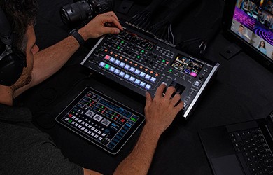 El V-160HD combina el hardware robusto necesario para llevar a cabo producciones en directo sin fallos con las capacidades de retransmisión en directo que ofrecen los sistemas informáticos. Mientras que los flujos de trabajo basados en software solo son adecuados para eventos en línea, el V-160HD proporciona la base profesional que necesitas tanto para los componentes presenciales como para los transmitidos de un evento híbrido en directo, complementada con la posibilidad de adaptar el contenido a cada tipo de público.