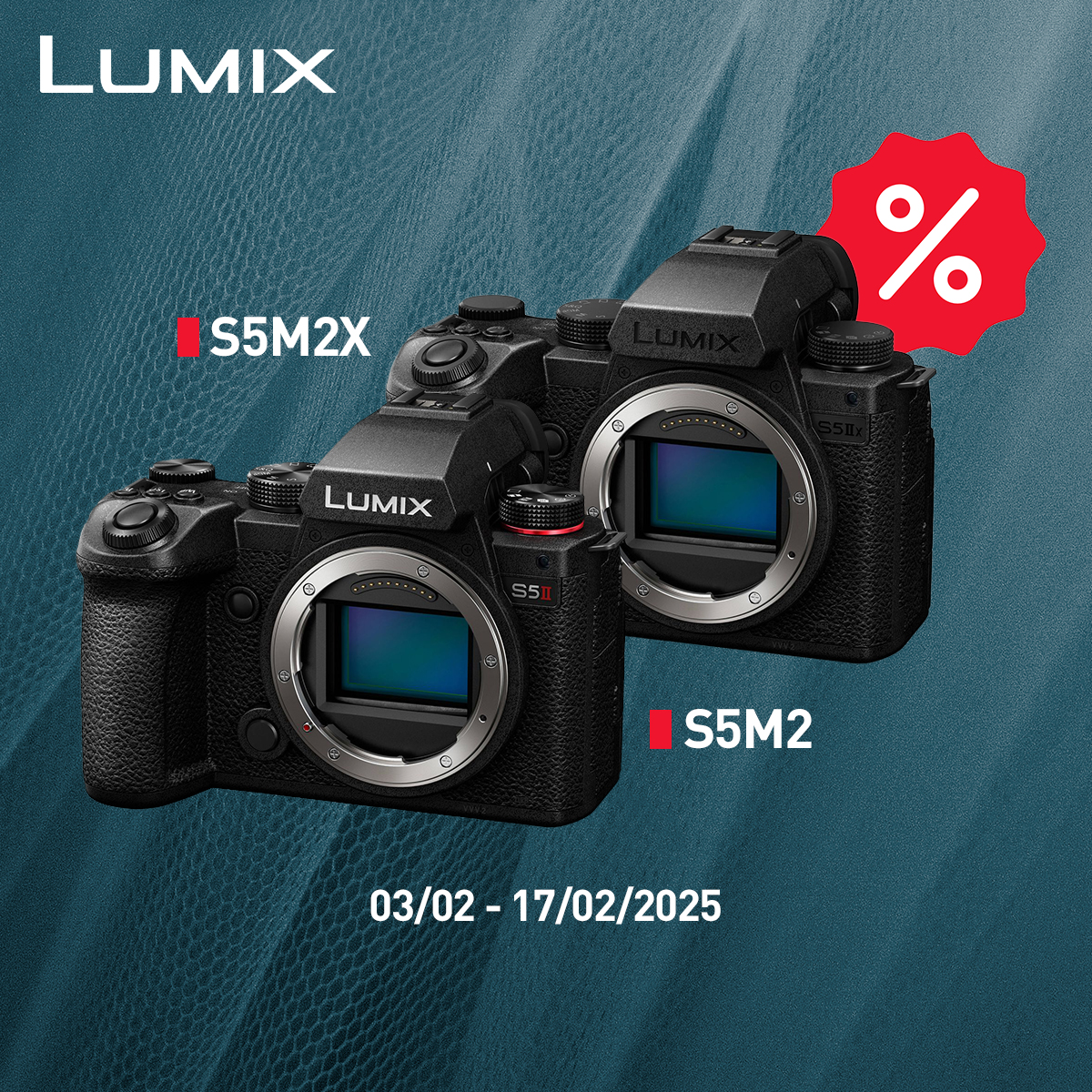 Podrán adquirir los modelos , S5M2 y S5M2X en nuestra tiendadel 3 al 17 de febrero de 2025 a precios de promoción. La oferta es válida únicamente para las cámaras vendidas durante el periodo indicado.