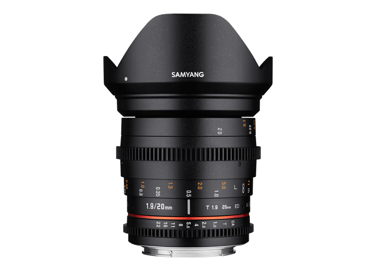 El Samyang 20 mm T1.9 ED AS UMC es un objetivo gran angular básico de cine con enfoque manual para cámaras réflex digitales con sensor de formato completo. El flujo de luz se ha diseñado teniendo en cuenta la distancia única entre el cristal y el sensor de las cámaras sin espejo, con el fin de lograr un rendimiento óptimo.