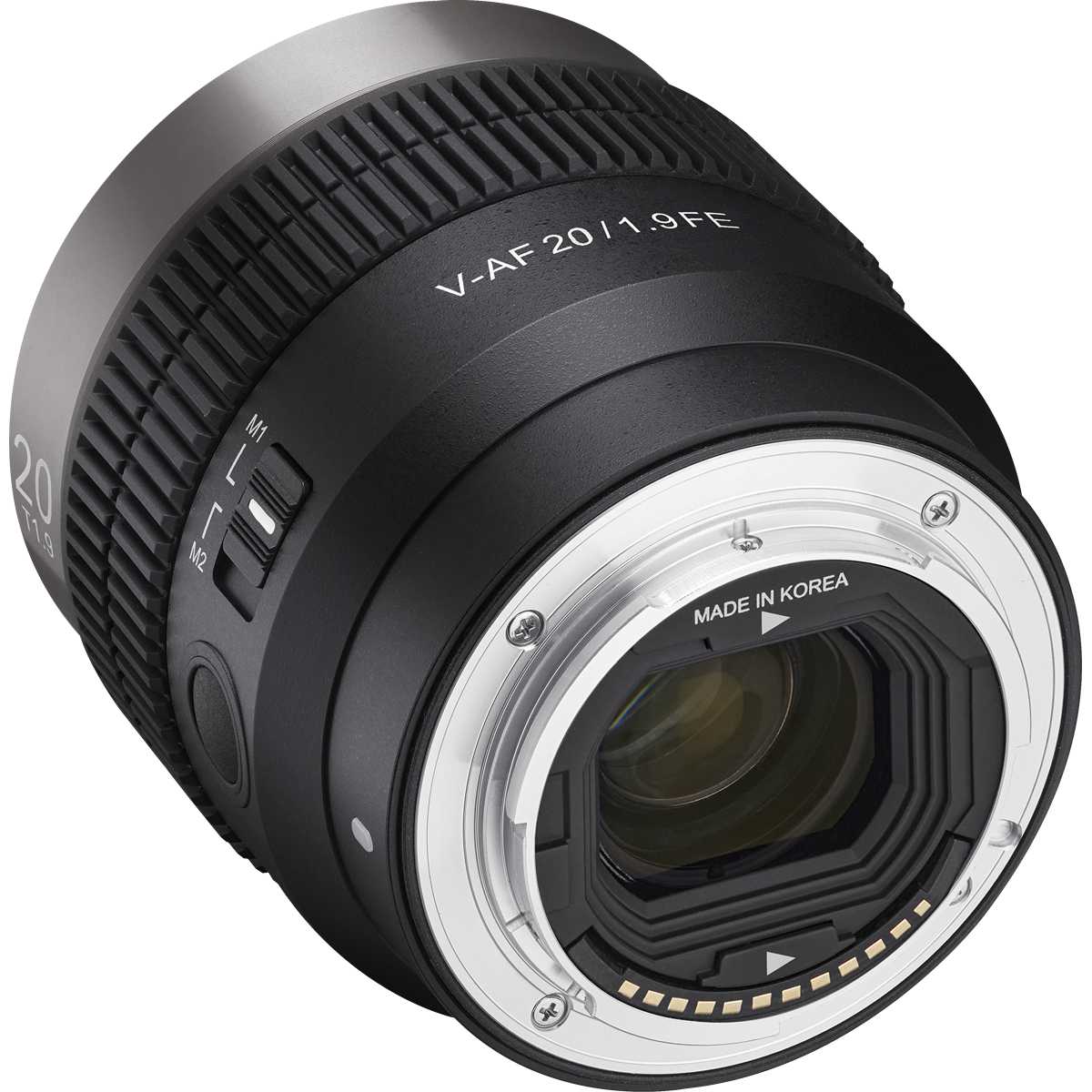 La gama de objetivos AF para cine Samyang V-AF se centra en ofrecer una alta calidad de imagen al tiempo que minimiza las dimensiones y el peso del cuerpo (<300 g) para facilitar al máximo su uso con estabilizadores de cámara y drones. La serie ofrece varias distancias focales fijas (20, 24, 35, 45, 75, 100) con las mismas dimensiones y una gama de colores coordinada, un anillo de enfoque dentado y un diafragma de 9 láminas para una reproducción natural de la imagen fuera del plano de enfoque. El modelo 100 mm T2.3 FE se desmarca ligeramente de la serie por su longitud y su apertura T/2,3. Los objetivos Samyang V-AF proporcionan una resolución óptica muy buena, adecuada para dispositivos con sensores de hasta 4K y 8K; otro detalle interesante es el par de LED que indican que se está grabando, lo que facilita aún más el uso de los objetivos en estabilizadores, etc. El botón «Focus Save» sirve para bloquear el ajuste de enfoque durante el funcionamiento del AF, mientras que el interruptor integrado «Custom Switch» puede utilizarse, por ejemplo, para cambiar la función del anillo de enfoque a ajuste de diafragma en modo AF.La variante de 20 mm estará a la venta a partir de mayo de 2024.