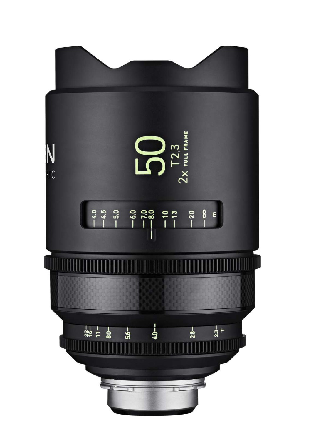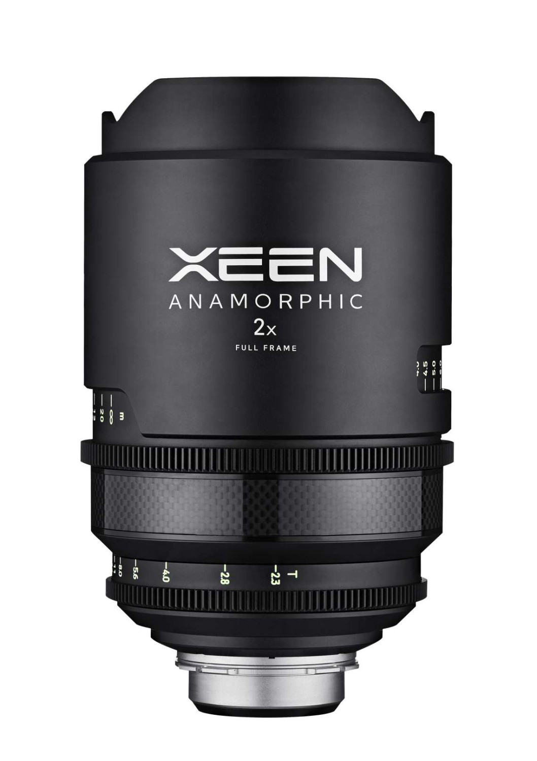 El modelo Samyang Xeen 2x Anamorphic 50 mm T2.3 se basa en la serie Xeen Meister y ofrece el mismo tamaño y disposición de los controles, así como un amplio recorrido del anillo de enfoque (300º). Este objetivo anamórfico 2x ofrece un alto rendimiento para los modernos sensores FF 4K/8K y produce una imagen que cubre el formato CinemaScope 2,55:1 (tras el estiramiento; en sensores FF). El objetivo cuenta con un diseño que utiliza materiales de primera calidad, incluidos compuestos de carbono y marcas de enfoque en colores fosforescentes para una buena legibilidad en condiciones de poca luz.