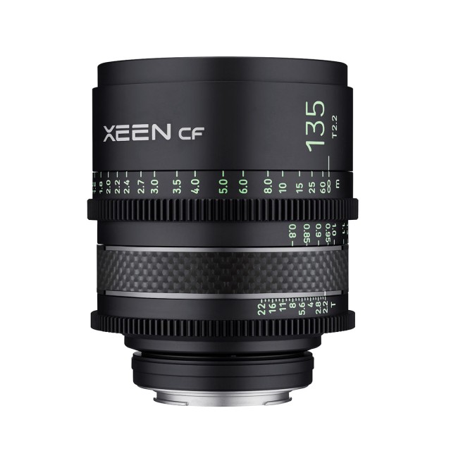El objetivo manual para cine Samyang Xeen CF 135 mm T2.2 ofrece una alta resolución óptica (para los modernos sensores FF 4K/6K/8K), una construcción que incorpora elementos de carbono para reducir el peso sin perder resistencia, anillos dentados para el diafragma y el enfoque (rango de 200°), un tratamiento superficial X-Coating para reducir los reflejos y marcas luminiscentes de fácil lectura. Se fabrica en las versiones EF, FE y PL.