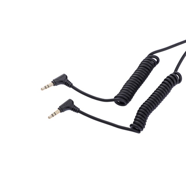 • Conectores de entrada: 2 × conectores TRS de 3,5 mm chapados en oro (cables en espiral, en ángulo recto)