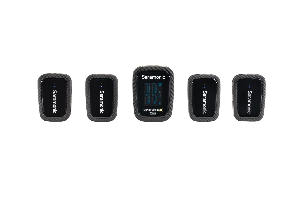 El Saramonic Blink500 ProX B8 es un sistema profesional de micrófonos de solapa inalámbricos de 4 canales diseñado para grabar el sonido de varias personas en condiciones difíciles. Ofrece 14 horas de grabación con 8 GB de memoria, resistencia al polvo y al agua según la norma IP66 y un alcance de transmisión fiable de hasta 280 metros. Este sistema es ideal para entrevistas callejeras, vlogs y discursos.