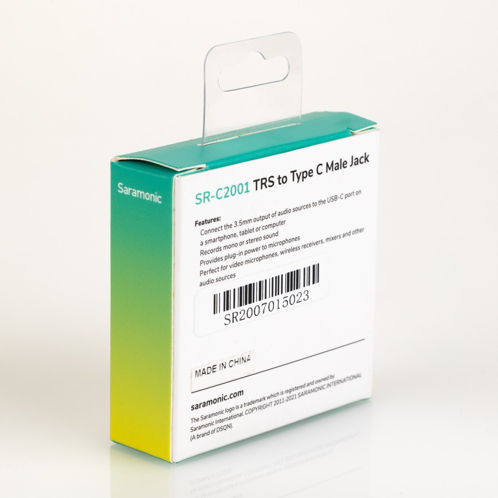 El Saramonic SR-C2001 es un cable de entrada de audio versátil y de alta calidad que permite conectar cualquier micrófono, receptor inalámbrico, mesa de mezclas o fuente de audio equipada con un conector TRS de 3,5 mm directamente al puerto USB-C de un iPhone 15, un dispositivo Android, los últimos modelos de iPad o un ordenador. Está equipado con un conector TRS de 3,5 mm chapado en oro y un conector USB-C, proporciona alimentación para micrófonos de condensador, admite grabación tanto en mono como en estéreo y permite una integración fluida con aplicaciones compatibles para vídeo, streaming o conversión analógico-digital, todo ello en un diseño ligero de de 9 pulgadas (22,86 cm) resistente a la corrosión que pesa tan solo 0,2 oz (6 g).