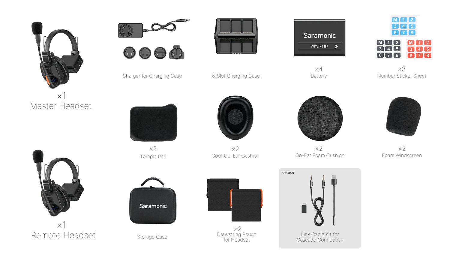 El Saramonic WiTalk9 WT2S es un potente y eficaz sistema de intercomunicación inalámbrico con funcionamiento totalmente dúplex, que ofrece una solución sin unidad central para equipos de hasta nueve personas. Este kit incluye un auricular principal y cuatro auriculares remotos monoaurales, listos para su uso inmediato. El innovador diseño del sistema permite una futura ampliación de hasta 30 usuarios con cuatro kits mediante conexión en cascada por cable, lo que lo convierte en una solución escalable para necesidades crecientes . Los auriculares principales se pueden conectar a un teléfono o a un ordenador, lo que permite la comunicación remota entre regiones a través de software popular como Zoom y Teams.