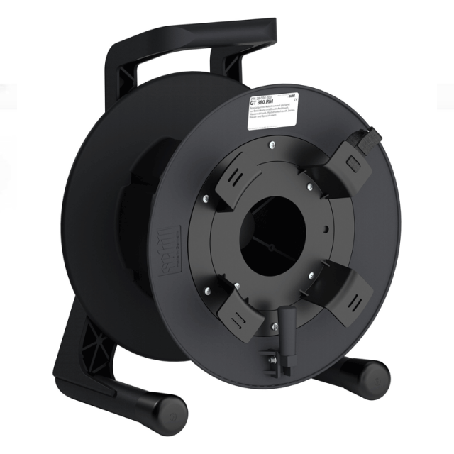El Schill GT 380.RM es un enrollador de cable de plástico con un soporte para el cable en la parte delantera