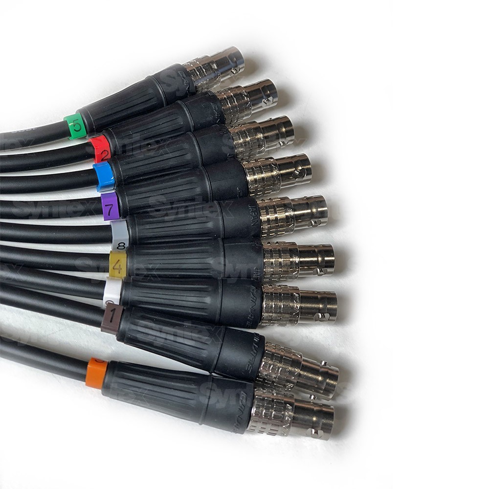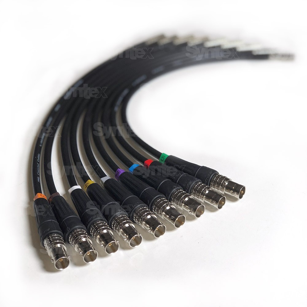 Juego de 9 cables de conexión para tarjetas Blackmagic Design DeckLink Quad. Longitud del cable: 0,3 m; conectores BNC tipo F (hembra)