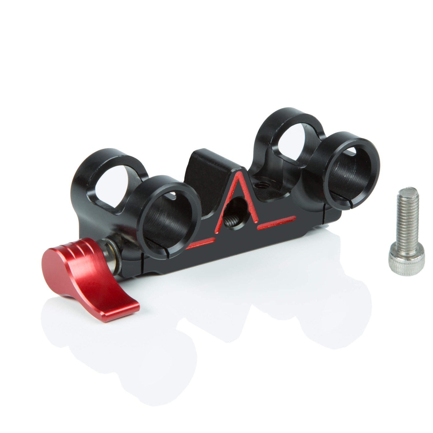 La plataforma del brazo se fija mediante cierres a presión. Las roscas para fijarla al trípode se encuentran debajo de la plataforma del brazo. Se incluye un par de barras de 15 mm (8″) para la parte delantera. Para fijar el matte box y otros accesorios, el adaptador de varillas se puede ajustar verticalmente si se retira el tornillo que lo mantiene en su sitio. Esta placa base también es compatible con los adaptadores opcionales SHAPE de 15 mm Studio y 19 mm Studio, que sustituyen al adaptador incluido. La placa base cuenta con tres orificios para la fijación de la cámara, compatibles con tornillos de 1/4″-20 y 3/8″-16. Las ranuras descentradas permiten montar la cámara desplazada si se utiliza el adaptador Studio de 15 mm. Detrás de las tres ranuras hay varias roscas de montaje de 1/4″-20 y 3/8″-16 para fijar brazos articulados y otros accesorios. El paquete incluye dos tornillos de 1/4″-20 y dos tornillos de 3/8″-16 para fijar la cámara.