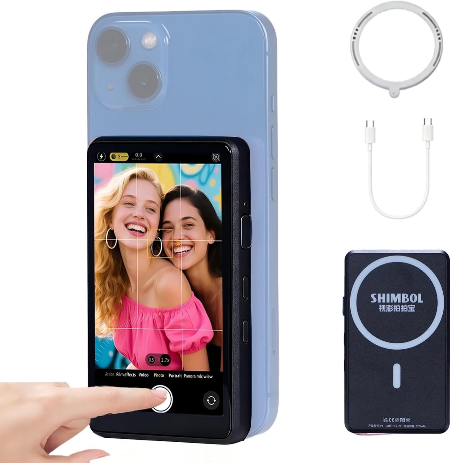 El Shimbol P4 Black es un monitor inteligente inalámbrico y compacto de 4 pulgadas que permite controlar totalmente el smartphone directamente desde la pantalla. Gracias a su pantalla multitáctil sensible, su latencia extremadamente baja y su amplia compatibilidad con Android e iOS, es la solución ideal para creadores, vlogueros y grabaciones a distancia.