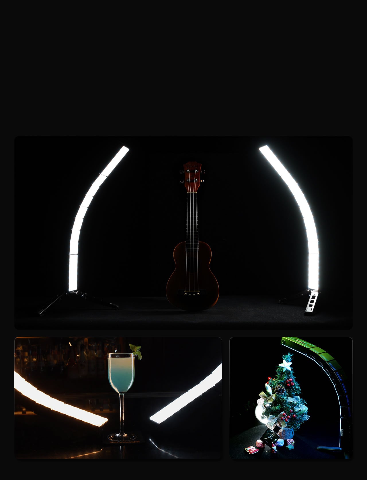 La primera luz LED flexible del mundo. La luz B25R se puede doblar hacia dentro o hacia fuera para iluminar correctamente el objeto. Los haces de luz curvados que genera la luz B25R resaltan el objeto del fondo y le dan un aspecto impecable.