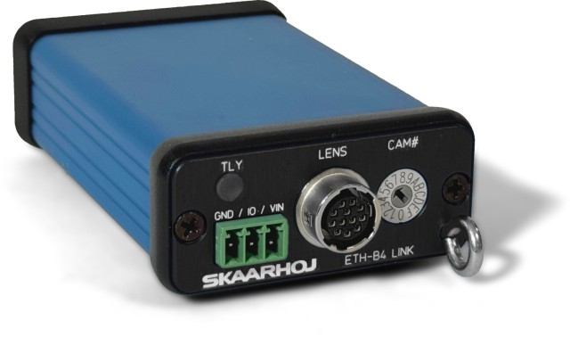 El ETH-B4 Link facilita la conexión en red de los objetivos de transmisión analógicos B4 con conector Hirose-12 y permite controlar el objetivo a través de Ethernet. Gracias al uso de los núcleos del dispositivo SKAARHOJ, los operadores pueden controlar con precisión la apertura de los objetivos B4 y acceder a un canal de tally dedicado. Este dispositivo destaca por su diseño increíblemente ligero y compacto y ofrece una solución única en la que los datos para el control del diafragma se transmiten por separado de las señales de control de la cámara. Entre sus funciones se incluyen un conmutador de cámara para la configuración de ID e IP, una salida analógica a través del conector Hirose-12 y un indicador tally bicolor junto con una salida de relé para señales de tally de programa, lo que garantiza un control integral.