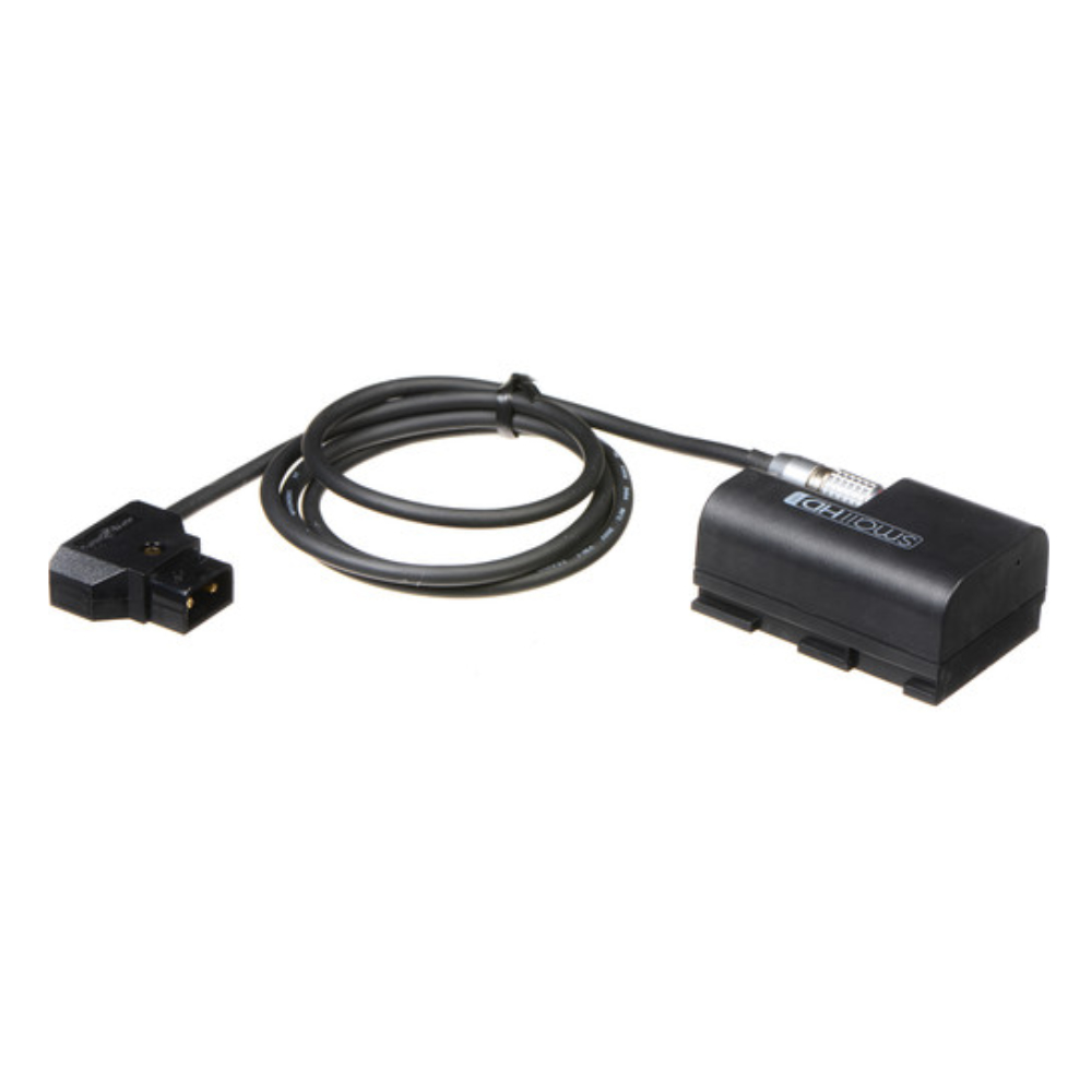 El kit de adaptador de alimentación y cable DCA5 LEMO a D-Tap de SmallHD permite utilizar una fuente de alimentación LEMO con los monitores de cámara SmallHD de las series 500 y 700. El adaptador tiene la forma de una batería LP-E6 ficticia y se instala en una de las ranuras para batería del monitor. El cable de alimentación D-Tap a LEMO de 3' incluido conecta el adaptador a la salida D-Tap, presente en muchas baterías profesionales, lo que le proporciona una fuente de alimentación con mayor autonomía que la que ofrecen las baterías LP-E6.