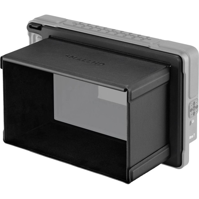 El parasol plegable SmallHD, compatible con el monitor Ultra 7, se fija mediante unas aletas magnéticas.