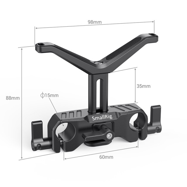 El soporte universal para objetivos SmallRig 15 mm LWS BSL2680 está diseñado para aliviar la carga sobre el soporte del objetivo de la cámara cuando esta se monta en las barras LWS de 15 mm, disponibles por separado. El soporte para objetivos ofrece un ajuste vertical de 34,5 mm, apto para la mayoría de los objetivos. La columna central se fija a un soporte en forma de Y, que cuenta con orificios para correas a cada lado para una mayor seguridad. La altura se puede ajustar mediante un botón de liberación rápida sin necesidad de herramientas. El soporte para objetivos es compatible con objetivos de hasta 150 mm de diámetro.