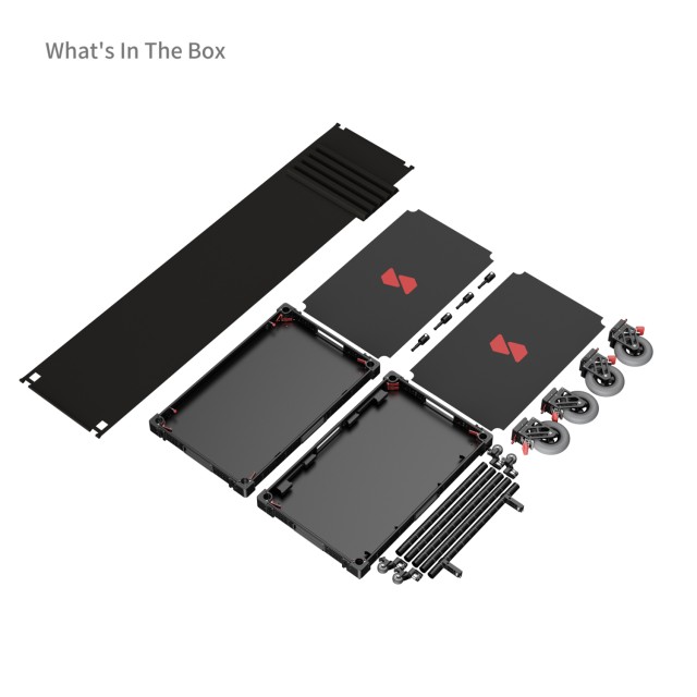 El carro está fabricado en aluminio aeronáutico y materiales industriales, y un solo miembro del equipo puede montarlo o desmontarlo en tan solo 5 minutos. Su diseño plegable se reduce a una altura de tan solo 17,2 cm para facilitar el transporte, por lo que es ideal tanto para estudios urbanos como para localizaciones remotas.