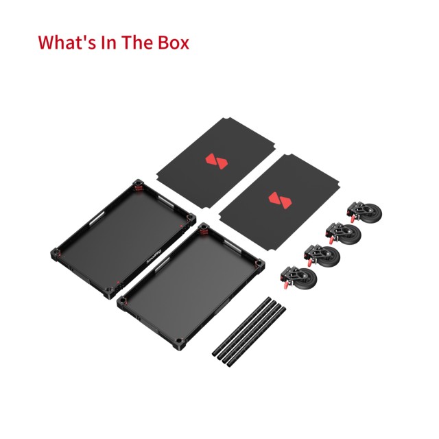 El carro está fabricado con aluminio de calidad aeronáuticay materiales industriales, y un solo miembro del equipo puede montarlo o desmontarlo en tan solo 3 minutos. Su diseño plegable ocupa tan solo 17,2 cm (6,8 pulgadas) de altura, lo que facilita su transporte, por lo que es ideal tanto para estudios urbanos como para rodajes en lugares remotos.