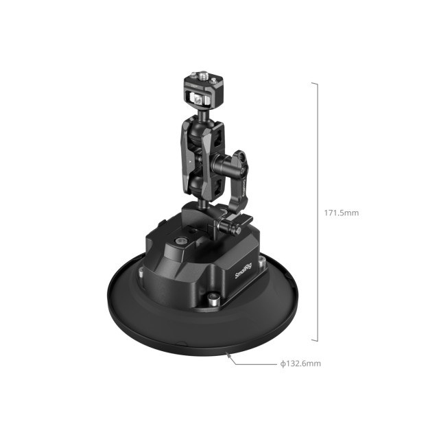 La base de montaje de aleación de aluminio está equipada con varias interfaces, incluyendo orificios roscados de 1/4"-20 y 3/8"-16 antirrotación y 3/8"-16 ARRI para fijación. Esta versatilidad permite acoplar brazos para sujetar una cámara de acción o fijar una correa de seguridad para grabaciones dinámicas. El paquete también incluye una cubierta protectora contra el polvo, que mantiene la ventosa limpia y prolonga su vida útil cuando no se utiliza.
